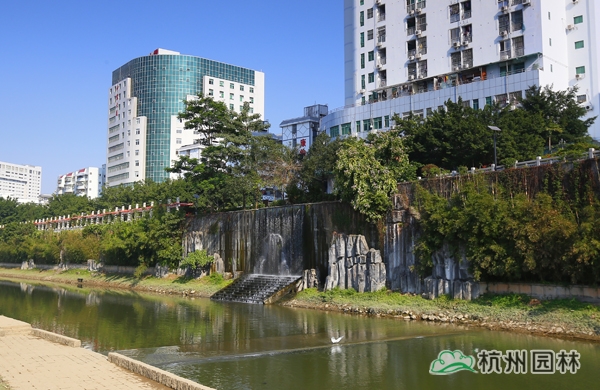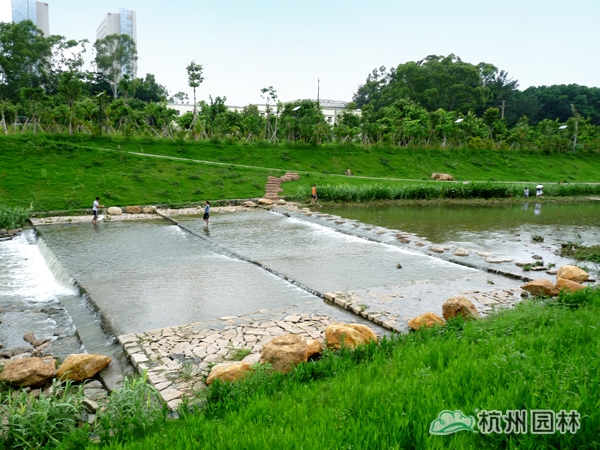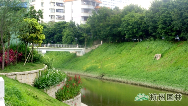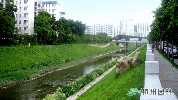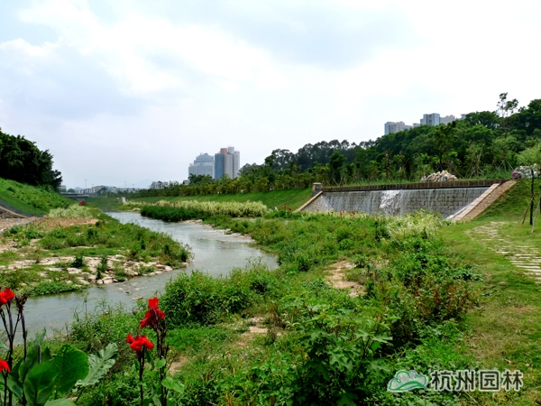 該工程位于深圳市羅湖區(qū)東部深圳水庫壩下,起點為東湖公園翻板閘消力池出口,終點為深圳河三汊河口,整治長度約2.5公里,施工內(nèi)容包括河岸護坡、景觀園建、綠化種植、給水和電氣、截污管及過河管道等。工程以“生態(tài)治理河流”為景觀設(shè)計主題,打造出一條生態(tài)修復(fù)與園林美景兼具的多彩濱河景觀長廊。