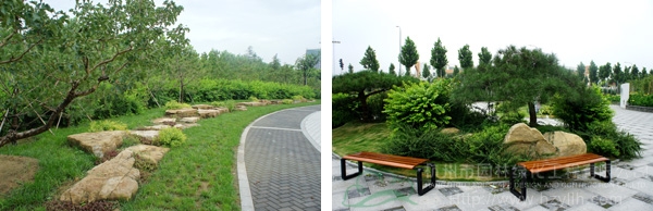 此外,工程中還用到了很多的景觀石,據高經理介紹,這些產自山東的龜紋石,質地堅硬,表面紋路獨特,主要用于上、下層苗木之間的過渡,相鄰景觀節(jié)點的分隔處,以及草坪中的點綴等。這些看似隨意但卻自然、和諧的景石擺放,讓生活在都市里的人們感受到了山之秀美、林之繁茂,就像一首無言的詩,一幅立體的畫,和著自然的旋律“輕歌曼舞”。