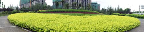 據(jù)高經(jīng)理介紹,該工程是壽光市2009年的一項(xiàng)重點(diǎn)市政工程,本著綠色、生態(tài)、自然的原則,在保留部分大樹的基礎(chǔ)上,對(duì)道路景觀進(jìn)行了全新改造。工程由北至南,依次設(shè)置下沉廣場(chǎng)、北廣場(chǎng)、南廣場(chǎng)、方形廣場(chǎng)等多個(gè)景觀節(jié)點(diǎn),每個(gè)節(jié)點(diǎn)的植物配置、地面鋪裝等都各不相同,形成一個(gè)個(gè)獨(dú)具特色的小場(chǎng)景;同時(shí),又通過(guò)錯(cuò)落有致的植物搭配、蜿蜒曲折的游憩步道,將整個(gè)工程貫穿起來(lái),使得整體的景觀效果統(tǒng)一中富于變化,開闊中層次分明。