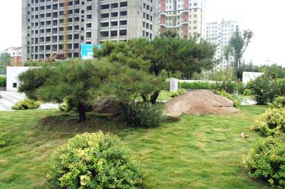 每個(gè)景觀節(jié)點(diǎn)上,植物的配置方法都是不一樣的,如在下沉廣場(chǎng),主要是以小龍柏、金葉女貞等小灌木片植成方形或弧形,間或點(diǎn)綴石楠、梅樹,看起來(lái)規(guī)整、簡(jiǎn)潔;而在設(shè)計(jì)風(fēng)格為江南園林的南廣場(chǎng)上,是將貴重的造型油松單植,通過(guò)不同的組合,形成三個(gè)風(fēng)格相近的綠島,周邊種植美人蕉、玉簪、竹子,并砌起白墻,上面開圓形拱門或圓窗,散發(fā)出詩(shī)意江南的靜謐和婉約氣息?!坝雾降朗秦灤┱麄€(gè)景觀的軸線,為了形成曲徑通幽的景觀效果,我們將對(duì)植、孤植、叢植都多種方法結(jié)合運(yùn)用,特別是在三叉路口,多種植海棠、櫻花、杏花等,一方面,花開的時(shí)候,綠葉間繁花點(diǎn)點(diǎn),會(huì)吸引人們不斷向前探尋更多的美景;而花落之后,茂密的枝葉又形成隱隱約約的視覺感受,前方轉(zhuǎn)過(guò)彎后風(fēng)景什么樣,又讓人很想去看看?!备呓?jīng)理笑著說(shuō)。