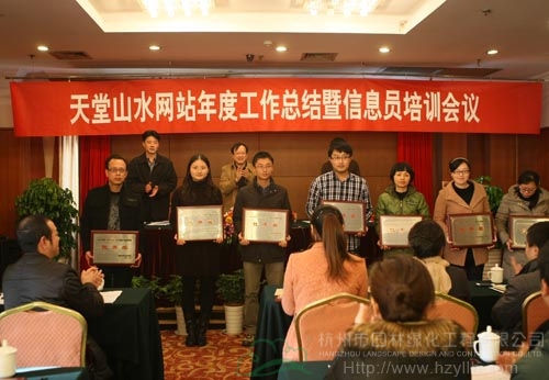 會(huì)議的重要環(huán)節(jié)之一為表彰先進(jìn)。徐協(xié)平宣讀獲獎(jiǎng)文件之后,周定炎、徐協(xié)平、繆梓倫為獲得2012年度“天堂山水”門戶網(wǎng)站的十佳單位、先進(jìn)個(gè)人、優(yōu)秀子網(wǎng)站進(jìn)行了頒獎(jiǎng)。其中,杭州市園林綠化工程有限公司網(wǎng)站被評(píng)為“優(yōu)秀子網(wǎng)站”,于會(huì)蓮?fù)颈辉u(píng)為信息宣傳工作“先進(jìn)個(gè)人”。