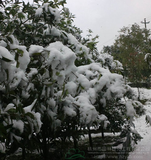 2月19日,一場暴雪突然而至,紛紛飄落的雪花,給了人們一個措手不及。厚厚的積雪給杭州市園林綠化工程有限公司各苗木基地的設(shè)施及露地花木造成了極大威脅。為了減少損失,基地人員在部門領(lǐng)導(dǎo)的帶領(lǐng)下開展了積極的抗雪工作。