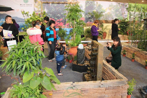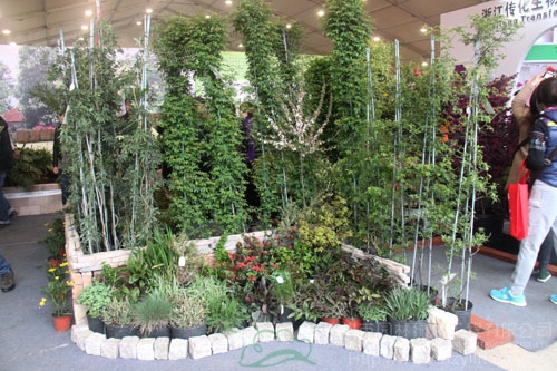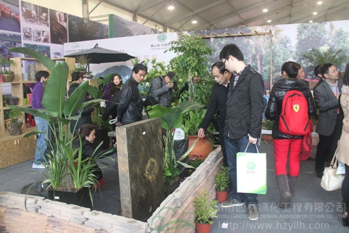 22日上午,浙江(中國)花木城的展廳里人潮涌動,自然的濕地景觀,古樸的庭院,美輪美奐的花境園,超大的“會呼吸”的綠墻……風(fēng)格迥異的情景展示讓人目不暇接。而在展區(qū)的西北角,是一個綜合型展區(qū):一排排透明的玻璃瓶里展示著研發(fā)中心的組培苗;整齊擺放的穴盤里是生產(chǎn)中心的扦插苗;后面的是運營中心造型優(yōu)美的組合盆栽、園藝飾品、盆器等;中間的庭院展示區(qū),低矮的墻角花壇里,一蓬紅艷艷的杜鵑,向人們吐露著春的美麗,生動的流水點綴一旁,引得大人和孩子爭相上前拍照;最里面一個木平臺上擺放著一套戶外家居,既是采供中心人員的洽談區(qū),也是景觀的一部分。這,就是杭州市園林綠化工程有限公司的展區(qū)。