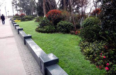 據(jù)李壽仁介紹,保留下來的大樹主要有兩種處理手法:像天竺桂、黃葛樹等幾十年的老樹,在周圍搭建木質(zhì)平臺(tái),既可以保護(hù)大樹,又可供游人休息;一些香樟、桂花、銀杏等,則用森林綠整石圍邊,搭配草皮、三色堇、球類、日本紅楓等植物,采用花境的布置手法,建成一個(gè)個(gè)面積大小不一的花壇,營造出四時(shí)風(fēng)光各不同的江南園林意境。而平滑、細(xì)膩的森林綠整石,既是景觀的一部分,又是漂亮的坐凳,兼顧了景觀與實(shí)用的功能。