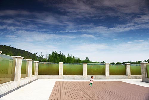 天師廣場:和天師嶺、創(chuàng)教路、鶴鳴臺等景點(diǎn)一起,集中展示張道陵天師歷經(jīng)得道、修煉、斗法、立教、升天,羽化成仙的過程,再現(xiàn)張?zhí)鞄煹男薜乐?。廣場呈半圓形,設(shè)有特色鋪裝、臺階花壇、觀景錯層平臺等硬性設(shè)施,觀景平臺與水上世界自然融為一體,伴著徐徐微風(fēng),云龍湖的美景盡收眼底。