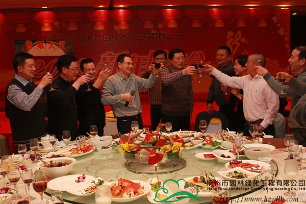 表彰儀式結(jié)束后,董事長吳光洪發(fā)表了新年致詞。吳董首先對各位領(lǐng)導(dǎo)和嘉賓的到來表示了熱烈歡迎;然后與大家共同回望了企業(yè)2011年所取得的成就,并對2012年的發(fā)展進(jìn)行了規(guī)劃和展望,他感謝大家對杭州園林一路的支持與關(guān)注,希望未來仍能與大家一起攜手前行;最后,吳董舉起手中的酒杯,與大家一起為新的一年干杯,并宣布晚宴正式開始。