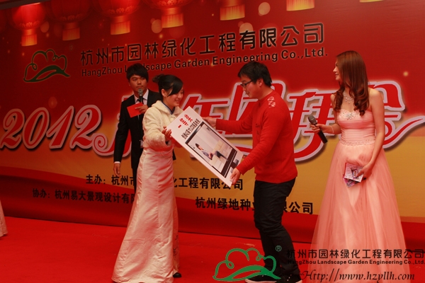 隨著晚宴的開始,精彩的節(jié)目表演也拉開了序幕。一曲熱情激昂的鼓樂《中國龍》,營造出了龍年吉祥喜慶的節(jié)日氛圍,隨后,唯美的獨(dú)舞表演、深情的情歌對唱、優(yōu)美的葫蘆絲吹唱,功夫茶道、詩詞朗誦、搞笑小品……一個又一個精彩節(jié)目,將現(xiàn)場的氣氛一次次推向高潮。而期間最令人期待的,是現(xiàn)場的抽獎環(huán)節(jié),一等獎的42寸高清液晶電視機(jī)、二等獎的皇冠寢室羽絨被、三等獎的博洋家紡四件套,豐厚的獎品讓每個人都期待著幸運(yùn)的降臨,隨著一組組數(shù)字的公布,抽到獎的人一個個歡喜雀躍,興高采烈地領(lǐng)走了獎品,現(xiàn)場成為一片歡樂的海洋。最后,投標(biāo)中心的一曲《明天會更好》,傳達(dá)了所有人對2012年的美好期待和祝愿,也預(yù)示著杭州市園林綠化工程有限公司2012年新春團(tuán)拜會的圓滿成功!