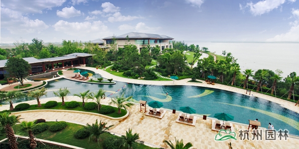 如今,走進吳江東太湖溫泉度假酒店,開闊大氣的入口景觀,整齊劃一的行道樹,道路兩側花境式的植物組團,首先帶給人一種高端、原生態(tài)的感覺。隨著蜿蜒的園路不斷延伸,更多的園林美景一一呈現:開闊的草坪起伏有致,自然式的花境布置清新雅致,造型獨特的黑松、女貞盡顯莊嚴華貴,婚禮草坪處處充滿浪漫氣息,露天泳池彌漫著濃郁的熱帶風情,溫泉泡池區(qū)懷舊氣息撲面而來,湖邊的觀景平臺則將自然美景盡收眼底……大氣中盡顯華貴雍容,細節(jié)中隨處可見精致品味,文化氣息處處流轉,自然美景比比皆是,園林與建筑渾然一體?!半m由人作,宛自天開”,是對該項目最凝煉的贊譽。