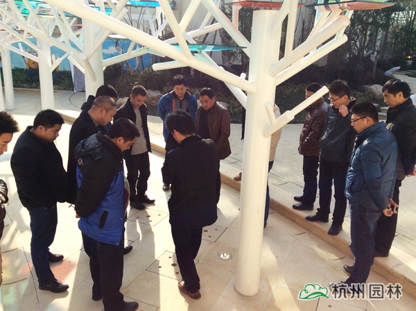 會議首先聽取了施工單位、監(jiān)理單位關(guān)于該工程施工及質(zhì)量情況的詳細(xì)總結(jié)與匯報。杭州市園林綠化股份有限公司項目負(fù)責(zé)人陳為有作為施工單位代表,就本項目的施工情況進(jìn)行了介紹。隨后,參會人員一行來到工程現(xiàn)場,從硬質(zhì)景觀鋪裝、植物種植、亮化燈具安裝質(zhì)量等各方面進(jìn)行檢查驗收?,F(xiàn)場驗收結(jié)束后,各相關(guān)單位代表就發(fā)現(xiàn)的問題進(jìn)行了總結(jié)和表態(tài)發(fā)言。
