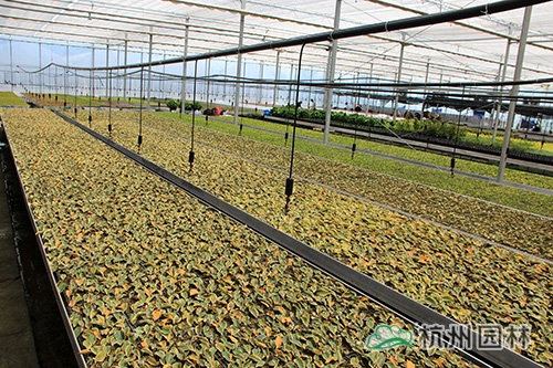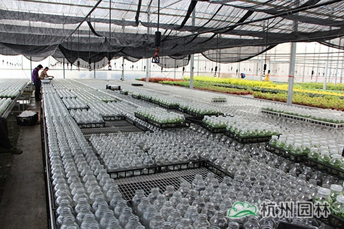 杭州畫境種業(yè)有限公司徑山基地基礎(chǔ)建設(shè)已于2014年基本完工,包括蔭棚地塊建設(shè)、基質(zhì)攪拌、辦公室、倉庫等,其中,新建的溫室大棚已全面投入使用,由公司自行組培的16萬棵火焰南天竹也進入了煉苗階段,畫境種業(yè)的員工和工人們一起,通力合作,爭取以最高的效率完成煉苗工作,總經(jīng)理黃民強也親臨現(xiàn)場,給大家指導與支持。在領(lǐng)導的關(guān)心下,大家信心倍增,計劃在一周內(nèi)完成全部煉苗工作?;鹧婺咸熘?,是公司組培研發(fā)生產(chǎn)的新品種,它植株低矮,枝葉密集;幼葉及冬季葉亮紅色至紫紅色,初秋葉變紅色,比南天竹紅色葉深,變色期早;喜溫暖濕潤、通風良好的半陰環(huán)境,較耐寒,生長較快,在園林景觀中的應(yīng)用比較廣泛。