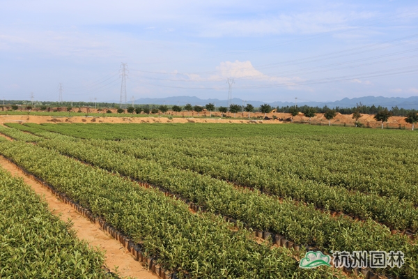 金華文廣苗木場位于浙江金華蔣堂鎮(zhèn),面積1000畝,十五年專業(yè)種植、繁育、經(jīng)營各種綠化苗木?;刂械墓鸹ㄆ贩N繁多,有金桂、銀桂、丹桂、四季桂、金球桂、狀元紅等,這些桂花蓬形密、長勢壯、造型好,冠伏在2米至5米的就達20萬株。香樟、杜英、無患子、紅玉蘭、紅葉石楠球等也達200畝。最吸引大家眼球的是基地中一排排排列整齊的寶塔形桂花樹,樹形獨特,長勢喜人。隨著市場的不斷變化,文廣苗木場不斷創(chuàng)新求變,通過修剪造型,培養(yǎng)出了寶塔形桂花,因此桂花銷量一直維持在較高水平。