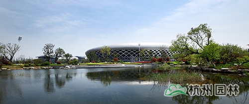 “徐州奧體中心主體建筑風格采用現代建筑,氣勢宏偉,莊重大方,時尚有活力。普通的園林風格無法滿足其要求,選擇怎樣的配套景觀風格是一個很大的難度?!表椖楷F場負責人夏修智說,“經過與甲方、設計等多方溝通及論證,最終采用了杭州園林提出的中國現代園林與現代建筑相互結合的優(yōu)化方案進行施工,使景觀效果與奧體中心建筑完美融合,營造出亦古亦今、中西混搭,整體布局恢弘大氣、局部婉約精致的現代園林風情?!?/p>