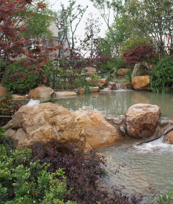 此外,景石的布置也是施工人員反復(fù)斟酌的問(wèn)題,如何使景石的布置做到師法自然,對(duì)水流有阻有攔、動(dòng)靜結(jié)合,如何做到相石立景、主次分明,如何使景石的大小、高低、間距的分布錯(cuò)落有致,如何使硬質(zhì)景觀與軟質(zhì)景觀完美結(jié)合等,項(xiàng)目部都進(jìn)行了周密的考慮。