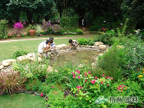 走進園內(nèi),蜿蜒的溪流和溪岸邊的景致野趣妙生,一下子撲入視野,清澈的溪水、光滑的卵石、可愛的小蝌蚪,與岸邊的銀邊菖蒲、水生鳶尾、花葉美人蕉、花葉蘆竹等水生植物一起,營造出生態(tài)、自然的河流景觀?!斑@條溪流,其實是我們杭州的母親河——錢塘江的縮影,通過這條溪流的營造,我們想呼吁更多的人保護生態(tài)、愛護環(huán)境,讓我們的母親河永遠干凈、清澈?!惫绾喍痰脑捳Z中,透露出的是一名園林人渴望更多人關注水生態(tài)環(huán)境的殷殷期盼。