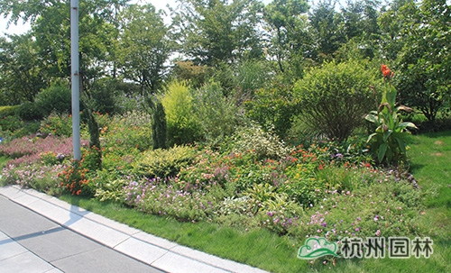 由于植物生長(zhǎng)的季節(jié)性,在炎熱的八月份進(jìn)行花境營(yíng)造,不止考驗(yàn)植物產(chǎn)品的適應(yīng)性,更考驗(yàn)施工技術(shù)。為了保證植物的成活率,這處花境中的植物都是精挑細(xì)選,從植物品種上考慮,挑選的都是適合夏季花境營(yíng)造的植物,并且將宿根花卉與灌木、常綠植物與彩葉植物等有機(jī)結(jié)合,營(yíng)造出絢麗多姿的花境景觀。為了保證工程進(jìn)度,施工人員頂著烈日,冒著酷暑,不但在施工中精益求精,從地形營(yíng)造、植物搭配、植物種植等各方面嚴(yán)格把關(guān),在養(yǎng)護(hù)中更是用心,定時(shí)澆水,修剪干枯的枝葉等,保證了花境的景觀效果始終呈現(xiàn)出最佳狀態(tài)。