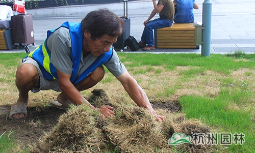 烈日下,他們?cè)谶M(jìn)行苗木養(yǎng)護(hù)工作,美景,離不開他們的辛苦付出