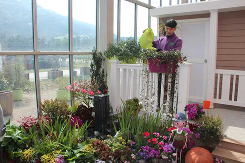 在園藝中心選購(gòu)打造一米花園所需的園林小品、植物材料及其他輔材。