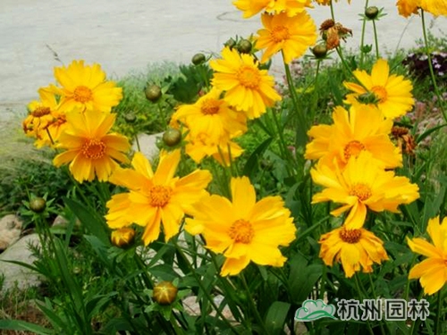 金雞菊,葉片多對(duì)生,稀互生、全緣、淺裂或切裂。花單生或疏圓錐花序,總苞兩列,每列3枚,基部合生。舌狀花1列,寬舌狀,呈黃、棕或粉色。管狀花黃色至褐色。既耐寒又耐干旱,pH 5-7都可以種植,很容易栽培。也常用于綠化栽培。特點(diǎn)是繁殖力極強(qiáng),有時(shí)成了半野化種。除了代表性的黃色外,還有重瓣等品種。