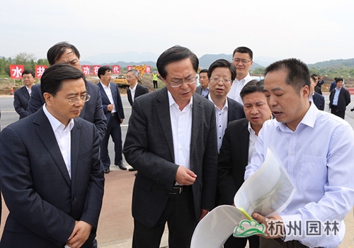 在施工現(xiàn)場,車俊一行聽取了項(xiàng)目建設(shè)情況的匯報(bào),對(duì)工程的建設(shè)思路給予了肯定,希望工程能夠高標(biāo)準(zhǔn)高質(zhì)量地完成,為安吉的生態(tài)建設(shè)做出一份貢獻(xiàn)。