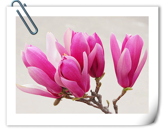 不同顏色的玉蘭中,開得最早的,當(dāng)數(shù)白玉蘭,那純正的白色花朵,纖塵不染,清雅秀麗中有著瓷器的溫潤質(zhì)感,仿佛一件件潔白的工藝品,很想將它捧在手心,慢慢品味它的精致與美麗。紫色的玉蘭花,則有著淡淡的華貴氣質(zhì),那含苞欲放的花朵,酷似一枝枝飽蘸紫色墨水的毛筆,揮灑自如間,描繪出獨屬于春天的明艷風(fēng)情。黃色的玉蘭花,呈現(xiàn)出淡淡的鵝黃色,柔柔的,嫩嫩的,帶著清新寧靜的氣息,有著超凡脫俗的美。不同顏色的玉蘭花有著不同的美麗,但每一種都那么迷人,充滿靈動的氣息。