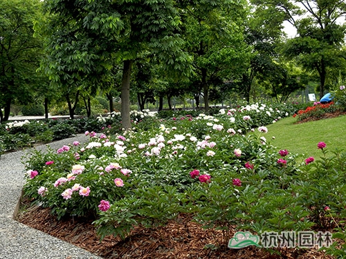 不同品種、不同色澤的芍藥沿園路形成路緣花境,又自成芍藥專類園。