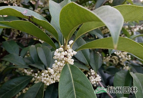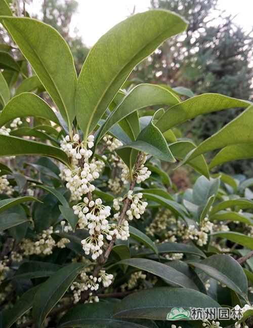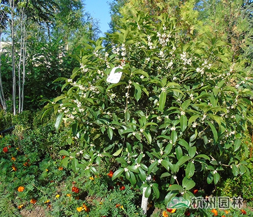 “浙江園”里應(yīng)用的桂花品種以丹桂和銀桂為主,共計(jì)50余棵,包括大喬木和小球類。為保證開園期間的觀賞效果,這些桂花被提前運(yùn)送至銀川,利用當(dāng)?shù)氐牡蜏丨h(huán)境誘使其完成花芽分化,終于在九博會開園時營造出了桂花滿樹、滿園飄香的氛圍。