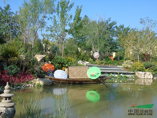因風(fēng)沙、潮濕、鹽堿度、溫度、降水、冰凍對(duì)建筑材料的損傷,則需要根據(jù)當(dāng)?shù)氐臍夂蚝偷乩憝h(huán)境選擇適宜的園藝材料,特別是建筑方面,而當(dāng)?shù)氐馁Y料便是最好的選擇。浙江展園一改南方資材,選用了寧夏當(dāng)?shù)氐牧瘛⑼餐叩?,青磚、烏蓬船則直接從南方運(yùn)來(lái),南北方園藝資料的有機(jī)互補(bǔ),營(yíng)造出一種融進(jìn)當(dāng)?shù)靥厣恼憬瓐@林景觀風(fēng)貌。