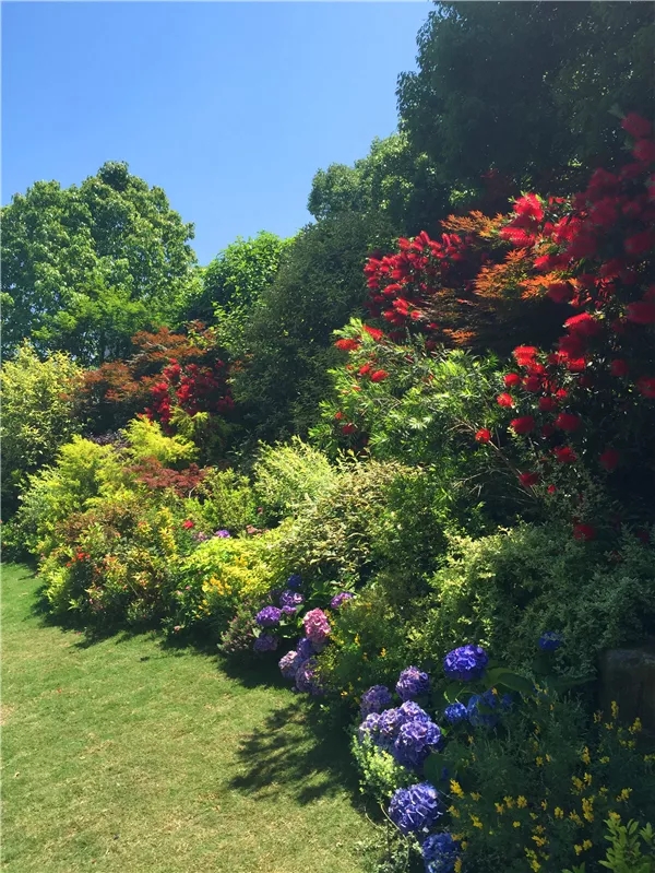 李壽仁則提出了干凈、秩序、健康、協(xié)調(diào)的四美標(biāo)準(zhǔn),用葉色、質(zhì)感不同的木本植物,通過團植、留白、景深、層次等多種藝術(shù)手法打造出低維護成本的木本花境,高低錯落、顏色豐富,景觀效果俱佳。