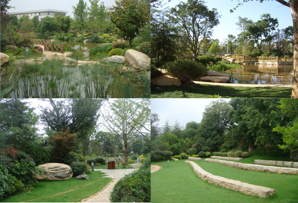 昆明市市級(jí)黨政機(jī)關(guān)辦公用房搬遷建設(shè)項(xiàng)目區(qū)內(nèi)景觀綠化工程(第三標(biāo)段),地處昆明市呈貢縣吳家營(yíng)鄉(xiāng)小尖山西北附近,總面積101800㎡,工程包括硬質(zhì)景觀、綠化種植和水電工程,為大型綜合性園林景觀工程。綠軸D組團(tuán)內(nèi)的人工湖的施工,清香木、黃連木和山楂等特型樹(shù)的應(yīng)用,自然石汀步、老石板園路等生態(tài)型游步道的鋪裝,成為工程中最大的特色和亮點(diǎn)。漫步在林蔭小道上,呼吸著清新的空氣,聆聽(tīng)著涓涓的流水聲,一幅綠意盎然、閑適愜意的生動(dòng)畫(huà)卷帶給人們更多關(guān)于自然的完美體驗(yàn)!