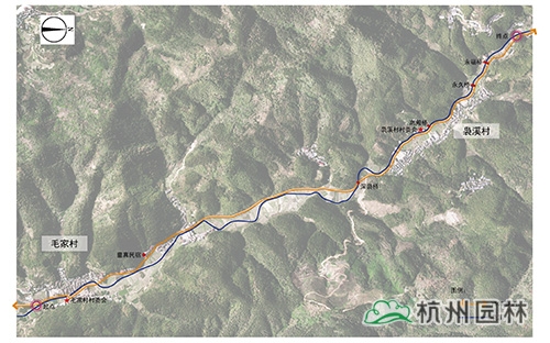 本次設(shè)計(jì)范圍為Y503鄉(xiāng)道(毛家村--裊溪村段)沿線的景觀改造提升,長(zhǎng)度約為3公里。改造提升內(nèi)容主要為道路沿線兩側(cè)的建筑立面整治、荒地覆綠、花壇整治、護(hù)坡?lián)鯄κ崂砀?、新增溪邊平臺(tái)、老橋修復(fù)、廣場(chǎng)整治等。