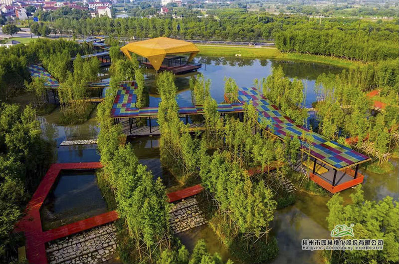 蘭溪市揚(yáng)子江綠道長(zhǎng)10公里,是杭州市園林綠化股份有限公司承建的揚(yáng)子江生態(tài)公園中的一部分。綠道分為騎行綠道和景觀漫步綠道兩大部分,其中,騎行綠道沿公園兩側(cè)分布,鋪裝材料為透水混凝土;景觀漫步綠道圍繞園內(nèi)水系蜿蜒而行,鋪裝材料采用清水預(yù)制混泥土板。