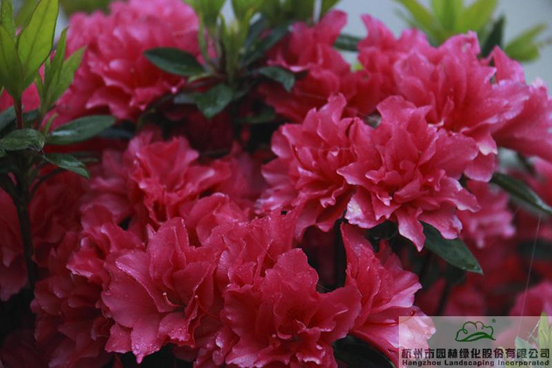‘常春3 號’、‘紅陽’、紅纓’、‘紫秀’、‘春詩’等杜鵑花;‘金玉’桂花、‘串銀球’桂花、‘玉簾銀絲’桂花;‘金菊3 號’菊花、‘仙斛3 號’鐵皮石斛等藥用植物;‘御金香’、‘黃金芽’等茶葉……這些獨具浙江特色的植物新品種的展示,充分展現(xiàn)了浙江園林園藝植物新品種開發(fā)的豐碩成果。4月29日,北京世園會開園期間,通過品種選擇,浙江園內的杜鵑正迎來盛花期,紅色、粉色、白色的杜鵑花將展園妝點得姹紫嫣紅,充滿了熱鬧喜慶的氛圍。