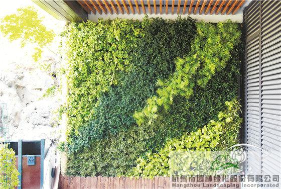 位于展園富春山居負(fù)一層門口右側(cè)的垂直綠墻,選用小葉梔子、龜甲冬青、黃金海岸線柏、火焰南天竹、哈伯南天竹、常春藤、吊蘭等植物,以“絲”為筆,用流暢的線條勾勒出浙江絲綢之美,體現(xiàn)浙江絲綢之韻,描繪出一幅柔軟飄逸的浙江絲綢之畫。