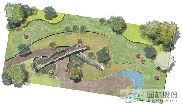 以枯木為主景,種植大灰蘚、細(xì)葉小羽蘚等蘚類植物,搭配枝條飄逸的河灘冬青,水波粼粼的淺水塘,打造生態(tài)且富有趣味的苔蘚濕地景觀,周邊小范圍種植花灌木及宿根花卉,增添色彩。
