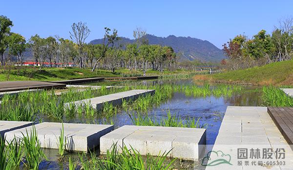 項目還充分利用滸溪及靈峰湖沿線的湖灣和眾多洼地,引水入園,打造雨水花園、下沉式綠地等,通過豐富的植物配置與景觀小品,形成沿湖而生的各個景點,并設置各色景觀橋連通內(nèi)塘與外湖的生態(tài)通道,將周邊景點有機串連。花木葳蕤景色各異,湖光山色相映成趣,整個滸溪沿線形成一個可循環(huán)的生態(tài)系統(tǒng),有效改善和美化了周邊環(huán)境,展現(xiàn)可持續(xù)發(fā)展的造園理念。
