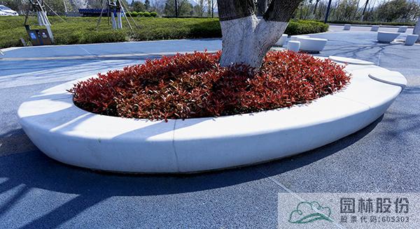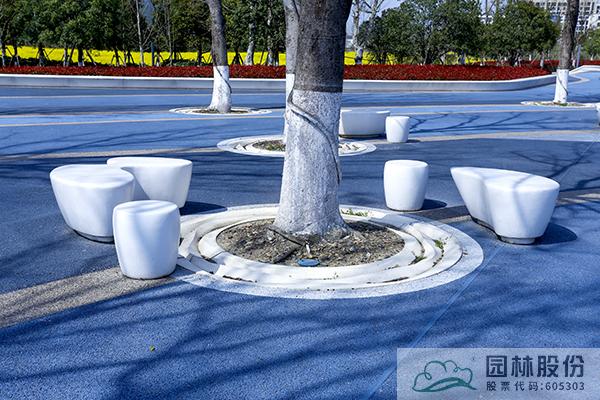 造型豐富美觀的泰科石坐凳和樹池是項目中的一大亮點。在波紋廣場和兒童樂園等地方,采用高強度復合無機泰科石材料,造型為圓形、橢圓形、異形的各種坐凳和樹池,錯落有致地分布,潔白的顏色與彩色的混凝土鋪裝相映成趣,既可以作為行人休憩的地方,又成為景觀的一部分。這些坐凳和樹池均以模具工藝成形,造型美觀,集現(xiàn)代休閑與實用功能于一體,表面光滑平整,自潔性好,抗污染強,維護簡單,只需擦拭后水管沖洗即可。