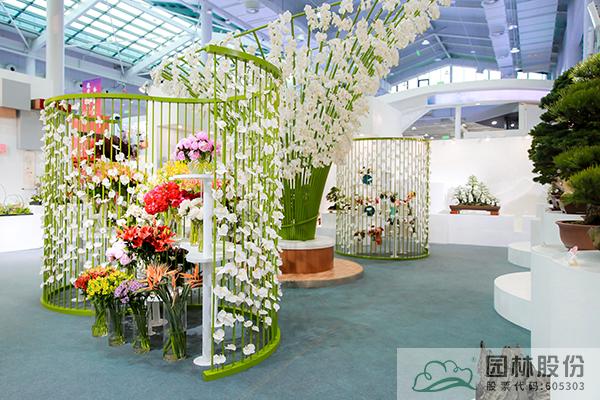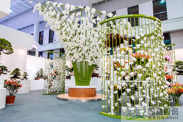 走進館內(nèi),各種浙江特色新優(yōu)園林園藝植物產(chǎn)品、花藝作品、盆景作品等,讓人忍不住駐足停留。最引人注目的,則是以一朵朵白色的蝴蝶蘭花朵與仿竹構(gòu)筑物營造的立體景觀,結(jié)合蒼翠欲滴的竹林背景和浙派山水盆景,營造出綠意盎然、生機無限的風景畫卷。寓意浙江是“綠水青山就是金山銀山”理論的發(fā)源地,表現(xiàn)浙江始終踐行“綠水青山就是金山銀山”的理念、大力推進生態(tài)文明建設(shè)取得的巨大成就。