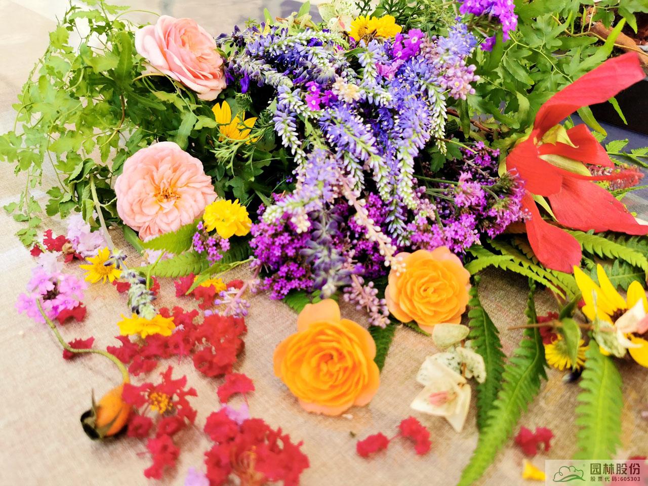 處理好的花材放置陰涼通風處,讓表面水分自然散發(fā)。同品種、同色彩的植物分類放好,避免后期制作時出現(xiàn)顏色混淆。