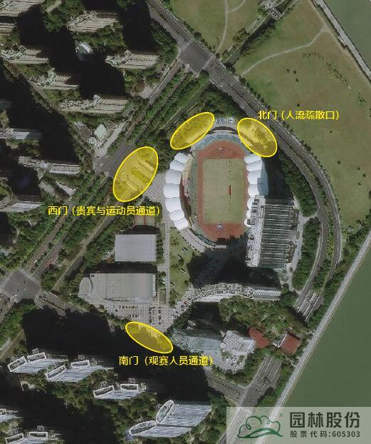 設(shè)計策略:對亞運場館三個出入口進行景觀提升,梳理中下層植被,布置足球主題裝置小品或綠雕,配合特色花境花帶和蒔花,打造活力、歡快、熱情的核心景觀氛圍。