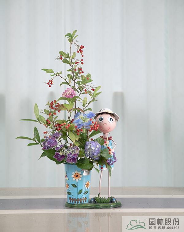 在風(fēng)景如畫的畫境·青山湖花園中心,以園林股份自主培育的繡球?yàn)椤爸鹘恰?,老師們用靈動(dòng)的雙手,無限的創(chuàng)意,制作出一幅幅新穎獨(dú)特的繡球花藝作品。所有花材均取自青山湖花園中心,不僅僅有“當(dāng)家花旦”繡球,還有企業(yè)自主培育的黃金枸骨、金橡樹葉冬青、花菖蒲等多個(gè)待申請(qǐng)新產(chǎn)品。