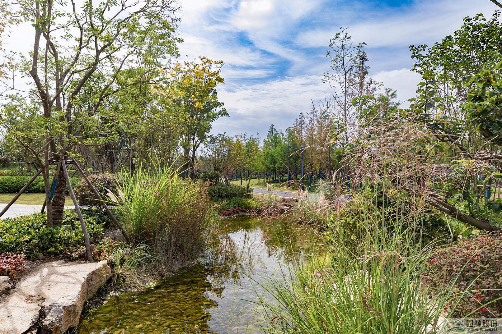 運(yùn)河灣公園是一個(gè)以海綿城市理念打造的景觀公園,從旱溪、濕塘等形式豐富的海綿設(shè)施,到各類(lèi)透水鋪裝材料的應(yīng)用,海綿城市理念貫穿于公園建設(shè)的各個(gè)環(huán)節(jié)。