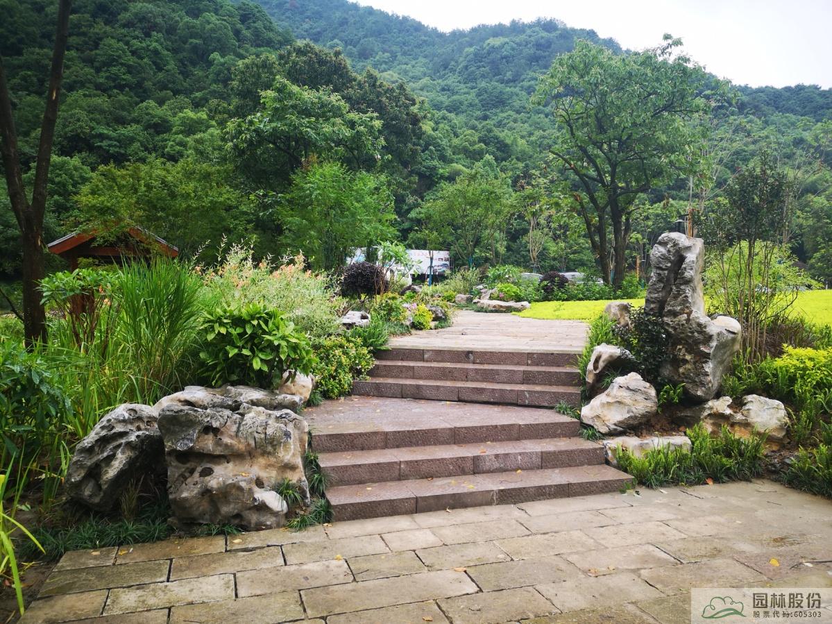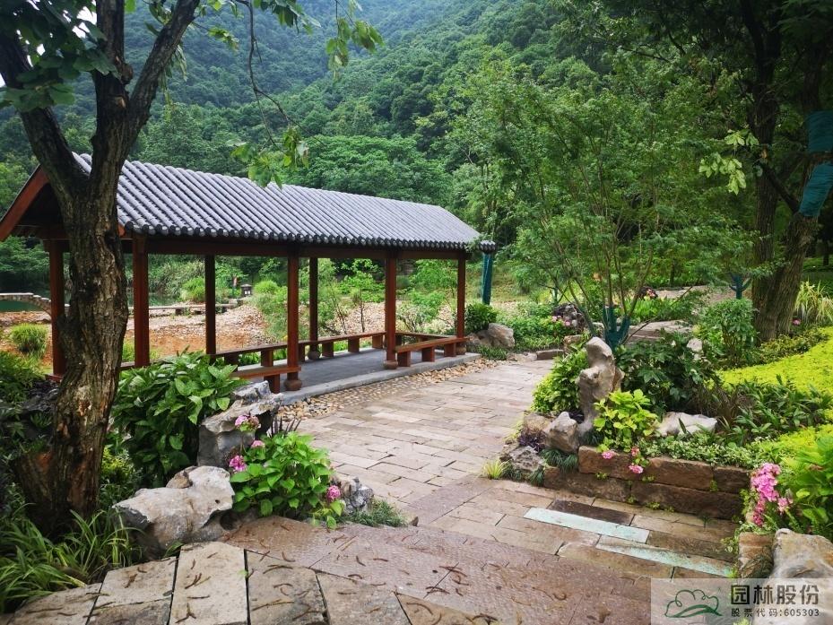 植被梳理:整理入口處現(xiàn)狀竹林,增加草花豐富景觀層次;在入口服務(wù)用房周?chē)O(shè)置花境庭院,提供休閑茶座供人休憩;