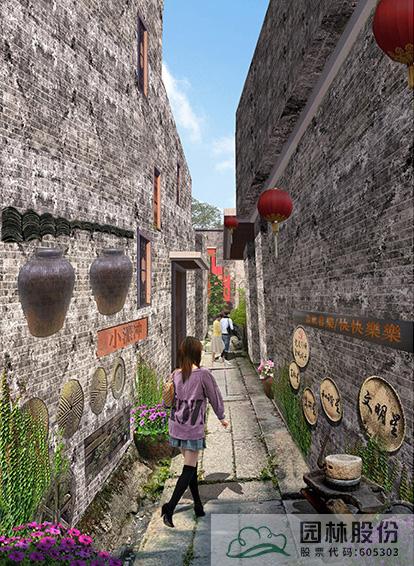 巷道改造現(xiàn)狀:現(xiàn)狀巷道為水泥路鋪裝,沿路缺少綠化,墻面磚砌樣式多樣,不統(tǒng)一,景觀效果不佳。