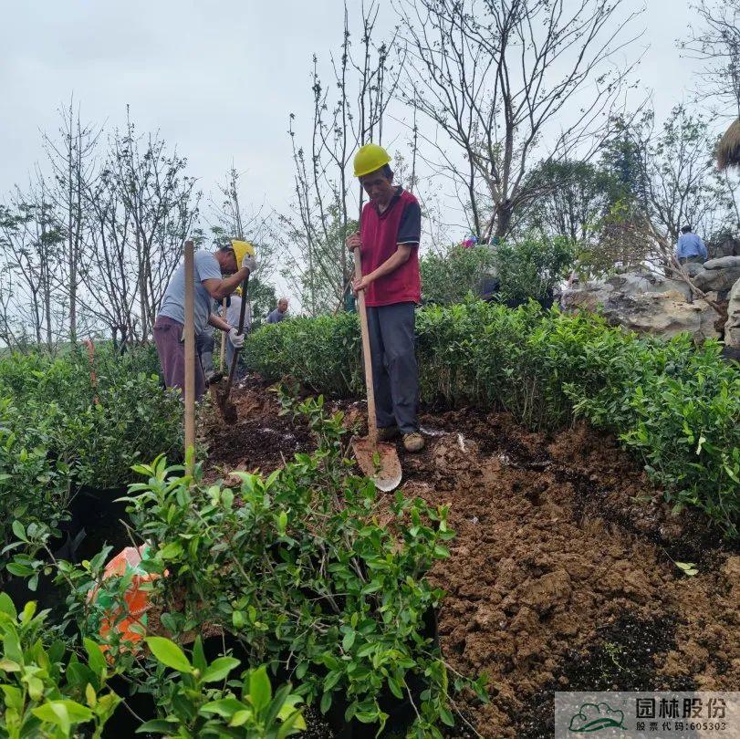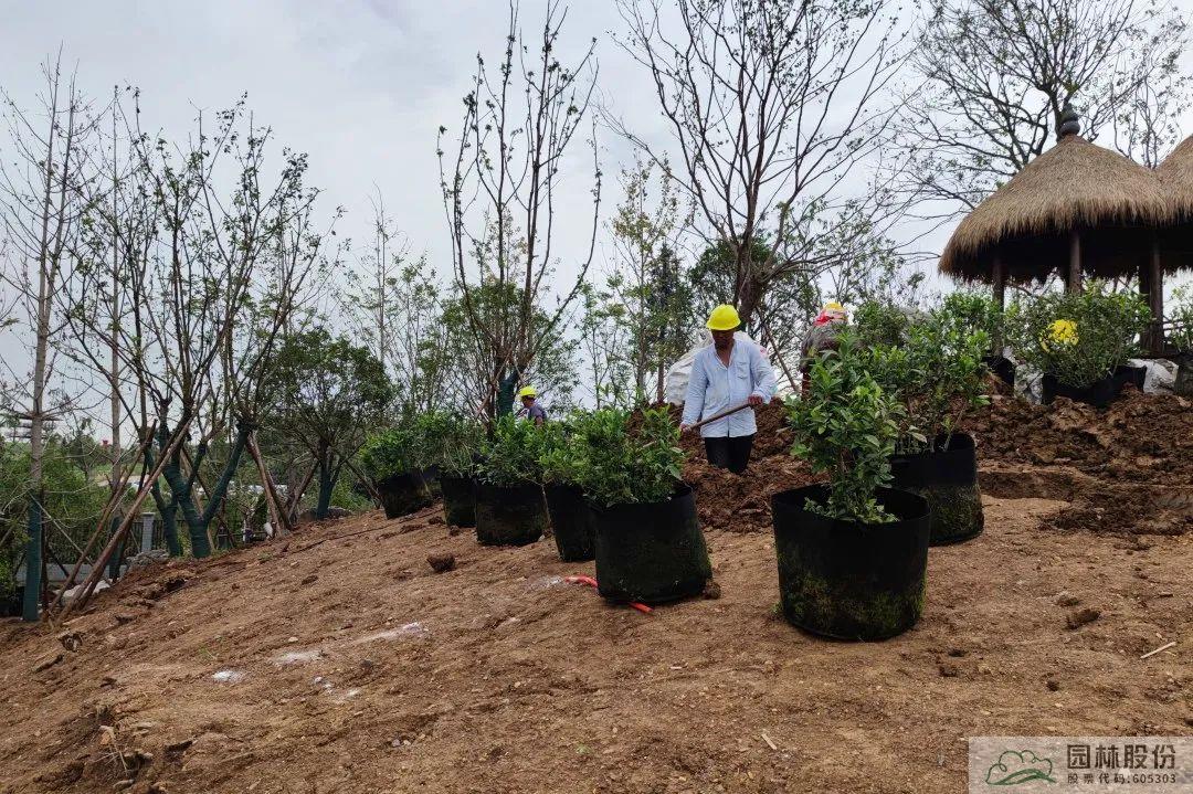 竹炭有機基質(zhì)主要是由竹纖維、有機氮肥、EM菌、生物炭、羊糞組合而成,經(jīng)過高溫發(fā)酵和堆肥腐熟,具有更輕質(zhì)、蟲卵雜草更少、疏松更透氣、性價比更高等優(yōu)勢,且竹炭資源可再生,生態(tài)環(huán)保。在全面綠化施工時,施工團隊運用竹炭有機基質(zhì)與回填土混合回填的方法種植喬木類,在地被植物方面則以竹炭有機基質(zhì)作為表層土平鋪。