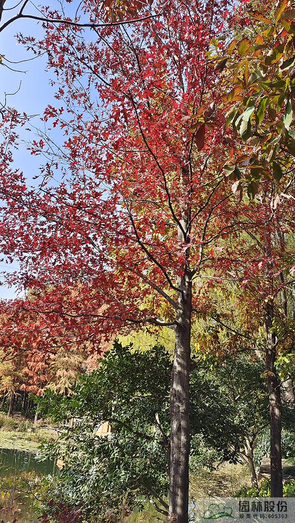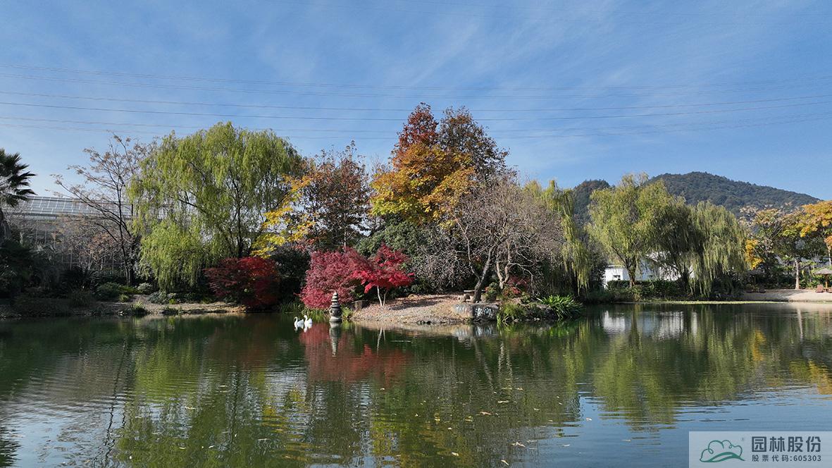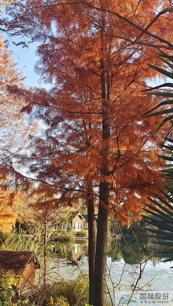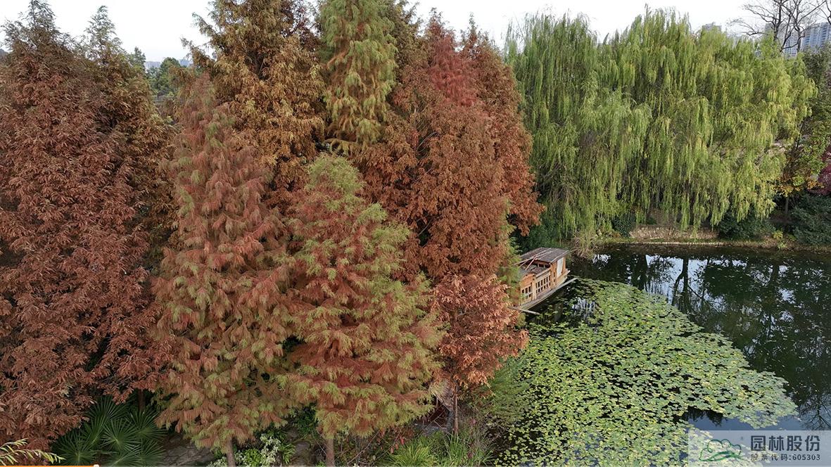 金黃的無患子、絢麗的紅楓、黃紅變換的楓香構(gòu)成了畫境園初冬繽紛世界的三部曲。半島的烏桕、池塘對(duì)岸的水杉水松池杉混交林,則如跳動(dòng)的音符,共同譜寫著初冬的樂章。