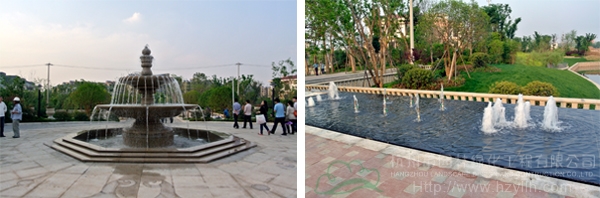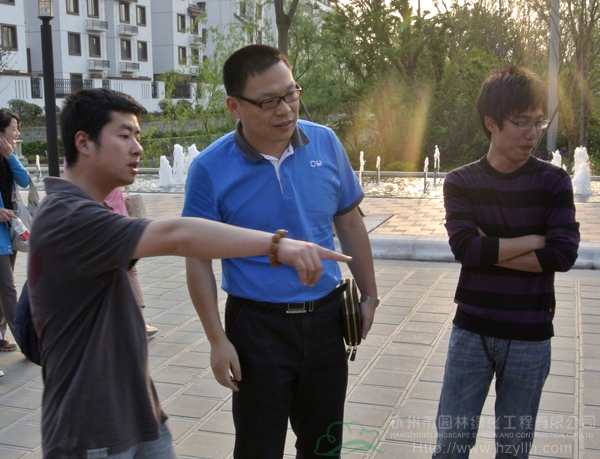 位于南京徐莊工業(yè)園內(nèi)的紫金東郡居住區(qū)景觀綠化工程剛剛俊工,項(xiàng)目經(jīng)理場(chǎng)升超帶領(lǐng)大家參觀了現(xiàn)場(chǎng),并針對(duì)工程中的園路鋪裝、植物配置、水景設(shè)置等進(jìn)行了講解。為了突出江南水鄉(xiāng)的特色,工程中的水景元素運(yùn)用比較多,從大門口的水池、噴泉雕塑,到不同風(fēng)格的小型水景,使小區(qū)的整體景觀變得更加生動(dòng),更為即將到來(lái)的炎炎夏日增添了幾許清涼。