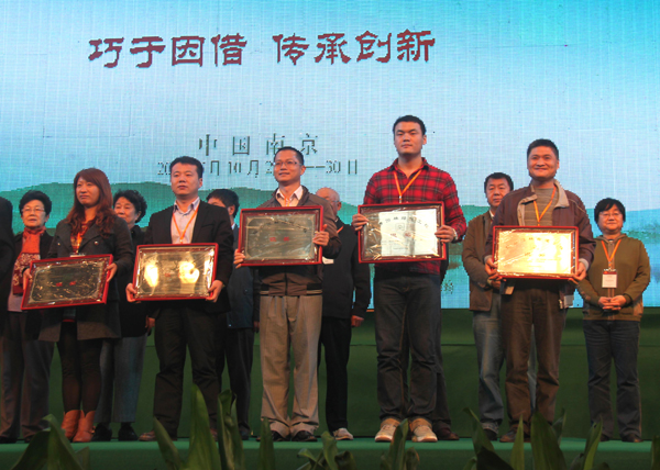 30日下午閉幕式的一個重要環(huán)節(jié)是為2011年度中國風(fēng)景園林學(xué)會優(yōu)秀園林工程獎獲獎單位頒獎。由杭州市園林綠化工程有限公司承建的“昆明市市級黨政機關(guān)辦公用房搬遷建設(shè)項目區(qū)內(nèi)景觀綠化工程(第三標段)”和“吳江市震澤鎮(zhèn)寶塔街西入口沿河、沿街北側(cè)、后花園仿古建筑工程”分別榮獲“中國風(fēng)景園林學(xué)會優(yōu)秀園林綠化工程獎金獎”和“中國風(fēng)景園林學(xué)會優(yōu)秀園林古建工程獎銀獎”。高總代表公司上臺領(lǐng)取了獎牌。